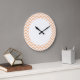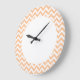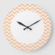 Hip e Trendy Chevron Wall Clock. Este relógio legal apresenta um padrão de zag em zag em gesso em coral e branco. Adicione texto a este design para lhe dar um toque pessoal.