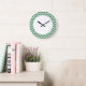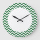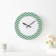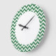 Hip e Trendy Chevron Wall Clock. Este relógio legal apresenta um padrão de zag em zag em verde esmeralda e branco. Adicione texto a este design para lhe dar um toque pessoal.