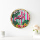 Este vibrante relógio redondo oferece uma sunny Aussie bem-vinda com um talento tropical. Um flamingo rosado em greve mantém-se graciosamente contra um pano de fundo de faixas verticais cor-de-rosa alternadas e turquesas. Leve folhas verdes de monstera e flores coloridas de hibisco em quadros cor-de-rosa, vermelha e amarela do flamingo. A palavra em negrito "WELCOME" aparece no topo em letras cor-de-rosa e brancas. O cronômetro apresenta uma imagem brilhante em tons de ouro, adicionando um toque de glamour a esta saudação australiana de verão.