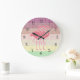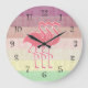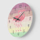 O moderno relógio de decoração da parede tropical da cozinha com lindas cores de designer em roxo, pinks e espuma marinha juntamente com flamingos rosa tropicais bonitos na face do relógio. Projetado para sua cozinha, sala de estar, ou sala de estar, ou qualquer quarto na sua casa que você queira decorar em estilo tropical com esta design para crianças ou adultos.