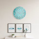 Design de relógio de parede único com um elegante padrão barroco damasco em um fundo turquesa angustiado.