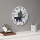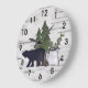 Este relógio rústico do campo apresenta um ursinho de silhueta parado com um pinheiro e decor de campo contra um fundo falso de árvore de pássaros. ^