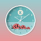 Verde e creme com uma família de joaninhas vermelhas e pretas fofa, relógio. Nome monograma. Decoração de berçário ou sala de jogos, para quarto de crianças. Ideia de presente.