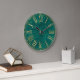 Relógio Grande Verde Escuro Aquarela e Sparkles Dourados