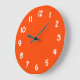 Uma cor laranja brilhante, vermelha. Adicione uma mensagem personalizada se quiser. A cor do plano de fundo é criada, nesse caso, por uma imagem gráfica simples. Você pode excluir essa imagem e usar o sistema para adicionar exatamente a sombra ou laranja, ou sua cor favorita a esses números brancos. Cara de relógio branco com a cor de sua escolha.