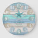 Relógio Grande Vidro do mar e madeira de praia náutica - Teal azu