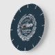 O relógio da parede na moda apresenta o selo antigo da cidade das MÃES de Boston em branco sobre fundo azul escuro. Tornou-se o selo oficial em 1914 e é uma imagem circular que apresenta: uma vista da Cidade de Boston, o lema, "SICUT PATRIBUS, SIT DEUS NOBIS" (que significa, "Deus esteja conosco como estava com os nossos pais"), e a inscrição, "BOSTONIA CONDITA AD. 1630 CIVITATIS REGIMINE DONATA AD. 1822."