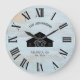 This rustic modern wall clock features a trendy farmhouse style design with a roman numeral clock face and a light blue white wood plank/shiplap backdrop. It makes a perfect gift for newlyweds, wedding celebrations, or housewarming occasions. Additionally, it's a great choice for a home makeover in your cabin, cottage, or country house. To customize, simply click 'Personalize This Design,' enter your details, and Zazzle will handle the rest.