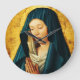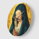 O fundo comum e escuro contrasta com a cabeça radiante da Virgem e com a morada branca que a cobre, e as mãos dela são cuidadosamente fechadas.