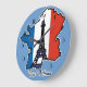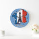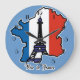 Um mapa da França, nas cores da bandeira francesa, em um relógio de parede. O texto diz Vive la France! Segure-o na biblioteca, no esconderijo, na casa de praia ou no escritório. Este relógio daria um presente exclusivo para o aquecimento doméstico ou para o aquecimento do barco (ou para o aquecimento do barco doméstico). Disponível em dois tamanhos de relógio redondo, ou um relógio quadrado. Copyright Scarebaby Design.
