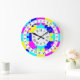 Relógio Grande Vivo Rosa Quente, Azul e Jigserra Amarela. Alfabet