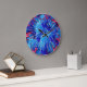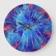 A combination between blue digital patterns with red electric design and fireworks in the background