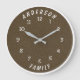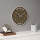 Large round call clock with dark, faux leather-style image for the background. The name is easily changed with the template. Selecting “Personalize this design” offers you several edit options to easily change the text (wording, plus type font, color, size, position) and to possibly edit the design elements. You may also want to scroll down to the section “Transfer design to a product” for a few suggestions about other items this design can be used on.