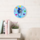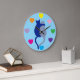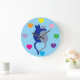 Relógio Grande Whimsical Blue Cat Clock with Rainbow Hearts