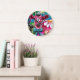 Relógio Grande Whimsical Floral Cow Pink Teal Black Personalized