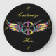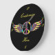 Relógio Grande Winged Hippie Peace Symbol Thunder_Cove
