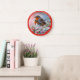 Este atraente relógio mostra uma imagem sazonal de um robin vermelho-assado pendurado num galho, com neve e morangos vermelhos. O rosto do relógio festivo tem uma borda vermelha ao redor da borda, que pode ser personalizada com seu próprio texto. Perfeito para qualquer amante da natureza ou entusiasta do pássaro, este relógio é funcional e decorativo, fazer presente de Natal ideal para a casa.
