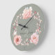 Relógio Grande Wreath Rosa de Aquarela Personalizada | Sage Green