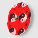 Símbolos brancos e preto Yang em fundo vermelho.