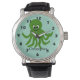 Wrist watch with an octopus design. You can customise this watch with any text of your choice. Should you require any help with customising then contact us through the message link on this page. Green octopi design personalised watch