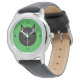 Este relógio maravilhoso mostra um gato preto com orelhas pontiagudas, olhos verdes brilhantes e um sorriso vermelho sorridente. Este gatinho assustador é perfeito para o Halloween ou para amantes de gatos.
