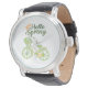 Alt Text: A vintage bicycle illustration with a flower basket and the text "Hello Spring" on a light background.