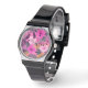 Um belo design floral de hibisco tropical em tons cor-de-rosa e cinzas. Parece excelente num relógio.
