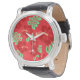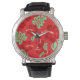 Relógio Hibiscus Tropical Vermelho e Verde Floral