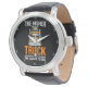 This unique wall clock blends trucking passion with a spiritual sentiment. Featuring an orange semi-truck against a black background and a matching orange rim, it boldly states: "THE HIGHER THE TRUCK THE CLOSER TO GOD". It's a thoughtful and meaningful gift for any truck driver who finds solace and connection on the open road. The design tool can also be used to add custom text if you want your name or company on this clock. You can customize the color of the frame to any color you desire by going into the design tool.