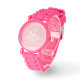 Kids Watch mostrado com uma face cor-de-rosa e uma correia brilhante rosa com um impressão floco de neve de feriado. Cor Rosa Personalizar este relógio ou comprar como está.