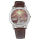 Relógio Homem Veado na Misty Woods na Hora do Ouro do Sol