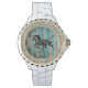 Esta é uma única "One of a Kind" Horse Watch! Ele apresenta uma Silhueta de Cavalo Negro galopante em um fundo de Turquesa e de madeira estressada de bronzeado! Design de Arte Original Do Artista Kerry Miller!