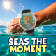 Whimsical artwork of a pufferfish reading a newspaper in a bubbling underwater bathroom, surrounded by aquatic creatures and decor, featured on a creative clock design, perfect for unique decor enthusiasts.