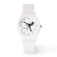 Este relógio apresenta uma silhueta preta de um skater de gelo, com números pretos e texto preto personalizável, sobre um fundo branco personalizável.