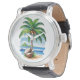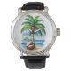Árvore de coco legal transparente em fundo numa ilha tropical com oceano tendo em vista