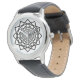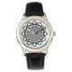 Esse design de 3 quadrados, rotacionado, reduzido e duplicado cria uma ilusão ótica de raios ou listras de luz vindos do centro do relógio. Os pontos externos (cantos) marcam as horas.