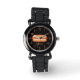 A rápida ilustração de comida de Destei de um pãozinho de cachorro-quente com uma salsicha grelhada que tem um pouco de ketchup e mostarda no topo. A face de relógio é feita de números de cor laranja e os minutos e horas são mostrados com círculos. A cor de fundo é preta, mas pode ser alterada para qualquer outra cor, se assim o desejar. Há também uma área de texto personalizável para um nome ou outro texto personalizado.