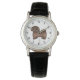 A ilustração original do desenho animado de Destei de um cachorro da raça Shih Tzu, de cor doce/fígado castanho. A face do relógio é feita de números pretos.