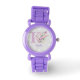 Design Floral com Números ao redor da circunferência. Nome & Primeiro Inicial em um Relógio de Criança. Design apresenta Monograma & Nome com Flores no estilo de pastel de cor de água. O nome de exemplo é Kate. Altere o nome conforme desejado para qualquer pessoa com um nome que comece com K.