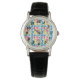 Este relógio feminino tem uma design moderna do século médio de retângulos arredondados, alguns dos quais são anexados e alguns deles têm estornamentos, em cores retrógradas de vermelho, ouro, verde e turquesa. Se você gosta do design, mas prefere cores diferentes, me mande mensagem.