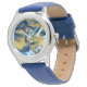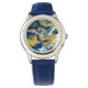 O trabalho de arte pintado original pintado à mão foi criado e criado na forma de um design de relógio para coincidir com as joias de moda "Gleaming Indigo", de relógio e designs acessórios na coleção SPWW '25. Eu encontro alegria e amor transformando minhas pinturas em produtos tangíveis para o estilo de vida pessoal no mundo inteiro, adorados com minha assinatura personalizada. As cores foram escolhidas querendo emparelhar um ouro contrastante com um azul-indigo escuro. Designs rotuladas em "Ela Pintas Vestindo Branco" (SPWW), são coleções criadas e derivadas do meu canal social @IvoryxCane "Ivory + Cane". São exatamente o que é mencionado. Criações de arte pintadas enquanto vestia meu velho vestido branco de casamento que nunca vestiu. Foi projetado com intenção, propósito e um significado maior que ele mesmo. Uma percentagem dos lucros de todas as vendas dentro destas coleções classificadas no âmbito do SPWW será doada para serviços e vítimas de violência doméstica em necessidade.