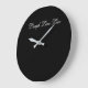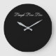 Um relógio de designer em um design preto e branco moderno. O fundo preto pode ser personalizado a qualquer cor junto com a mensagem inspiradora de riso, amor e vida, ou o texto é removível.