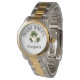 Este relógio de pulso personalizado apresenta o texto "Irish Angel", três shamrocks e um modelo de texto para o seu nome.