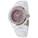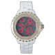 Relógio Jardim Vermelho Dahlia/folhas azuis