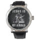 This wall clock combines strong religious faith with the trucking lifestyle. Set against a black background, it features a graphic of a semi-truck with a bold cross symbol behind it. The powerful statement "JESUS IS MY AIRBAG" is prominently displayed in distressed white lettering, making it a meaningful and distinctive piece for any devout truck driver or individual who trusts in divine protection on the road.