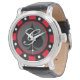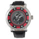 Jogando pôquer em Las Vegas, jogando no chip, personagem do relógio masculino. Design de moeda de marcador de casino elegante com ícone de espada. Cores personalizáveis. Exemplo vermelho. Personalize com nome, monograma, iniciais ou número de sorte. Tipografia clássica. Excelente para o Aniversário ou festa de casamento temático.