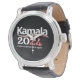 Kamala Harris para a eleição do presidente 2024, Make America Sane Again design, A cinza traz o texto "Kamala 2024" em branco e vermelho, com o slogan "make America sane novamente" embaixo. Linhas onduladas vermelhas e brancas sublinham a palavra "Kamala".