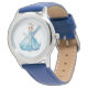 Crianças: um relógio clássico de pulseira de couro mostrado em azul com uma impressão de princesa fofa. Escolha esta monitorização a partir de vários estilos. Personalize este relógio ou comprar como está. Imagem licenciada