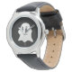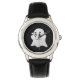 Este relógio para crianças é mostrado em aço inoxidável com uma face preta e uma correia de couro preto com uma impressão de fantasma do Halloween. Personalize este relógio ou comprar como está.