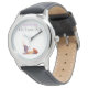 Relógio Kinder Edelstahluhr mit schwarzem Lederarmband Uhr